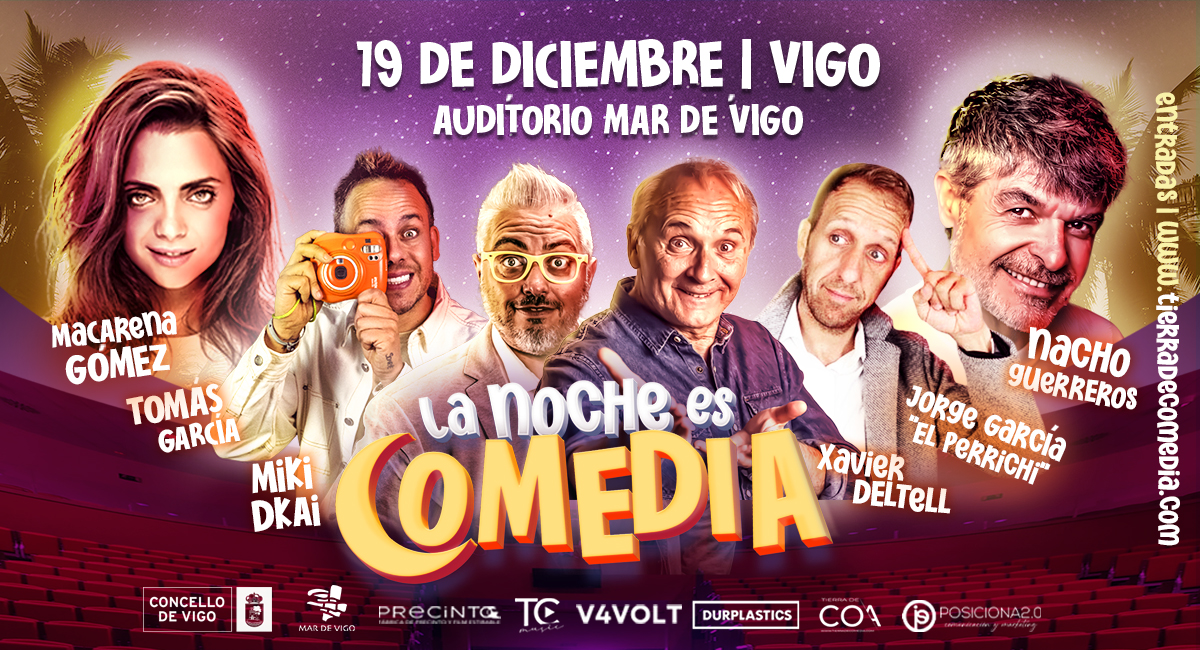 La Noche es Comedia reunirá el próximo 6 de septiembre de 2026 en Auditorio Mar de Vigo, en Vigo, a los monologuistas: Tomás García, Miki Dkai, Xavier Deltell y Jorge García «El Perrichi». Después de recorrer toda España, por fin llega a Vigo, de la mano de Tierra de Comedia, un espectáculo único e irrepetible donde las risas están más que aseguradas. Además, la actriz Macarena Gómez presentará junto a Nacho Guerreros este espectáculo único.